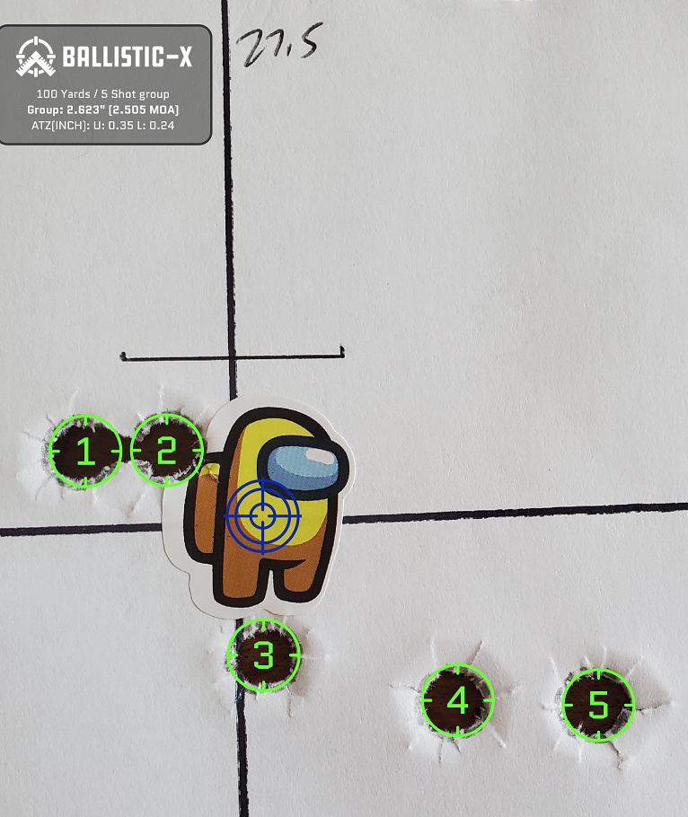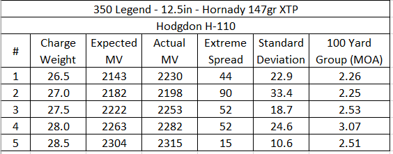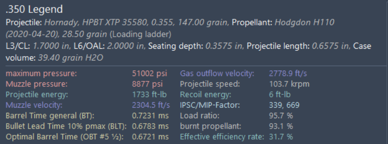 This load is more of a test to see how this bullet does out of this gun. This is a personal defense bullet intended for 9mm pistol rounds. This might be a decent hog hunting round at less than 150 yards, or a personal defense round in the 350 legend. But at this time, I just want to see how it shoots.