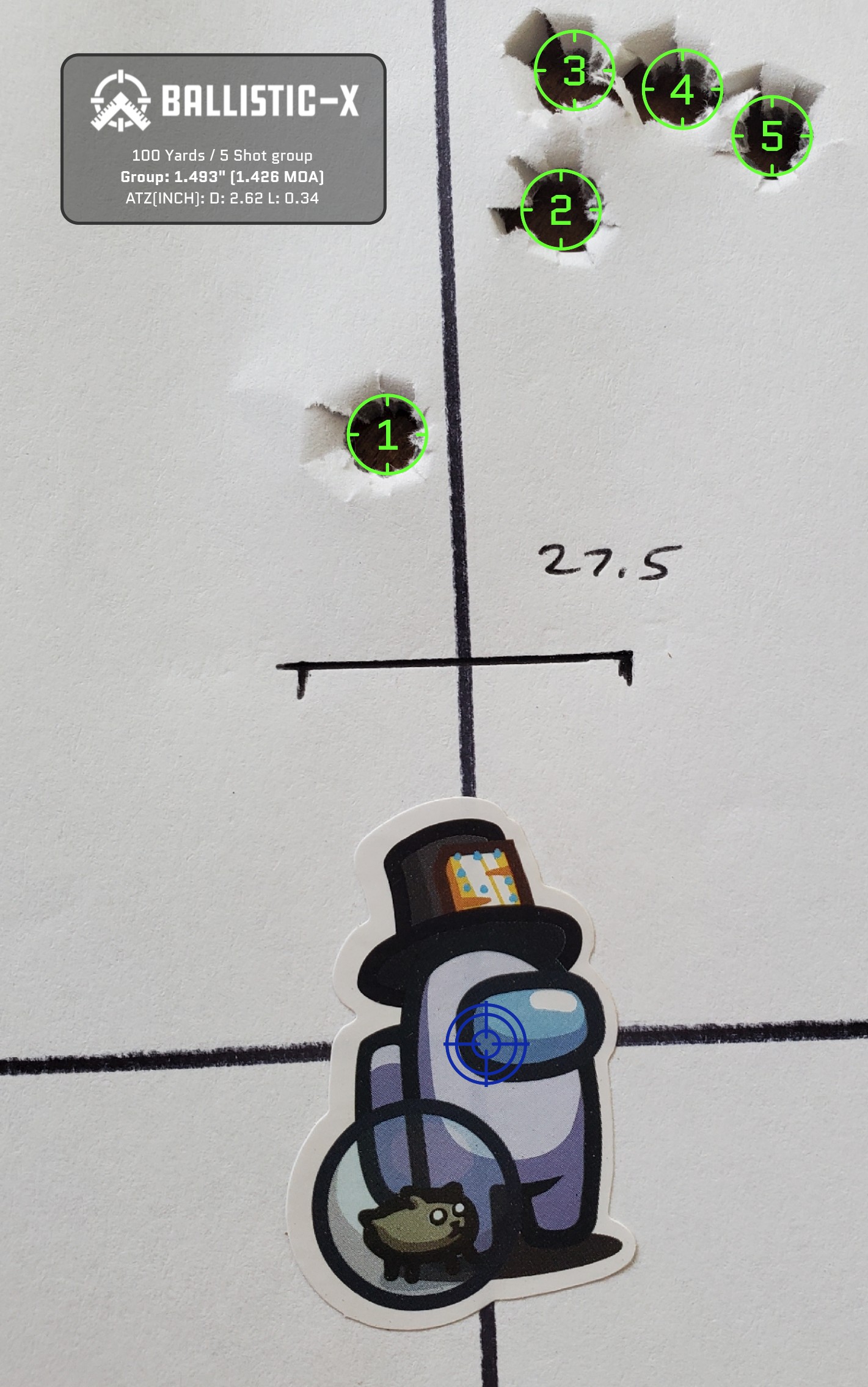 At the highest charge weights, I was seeing sufficient velociites but the groups started opening up. With 27.0 grains @ 2,054fps & 1.30moa, this round would be effectic to around 150 yards which is plenty enough for hunting on my property. There were no pressure signs on my brass but I was already working with compressed loads, so I don’t think there is any room to increase the charge weight.