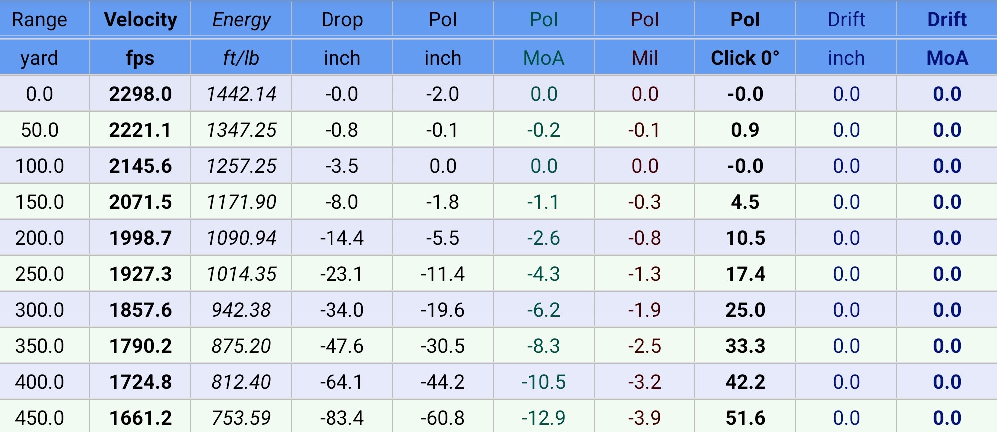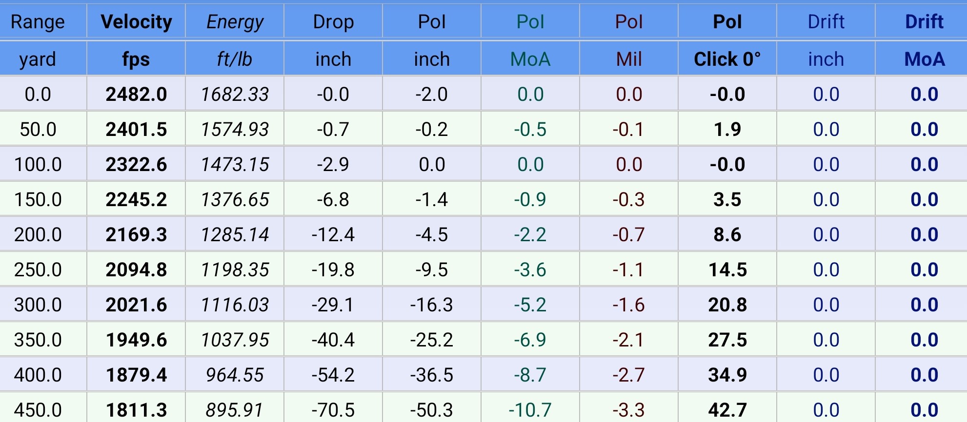 • Bullet: Hornady 123 gr SST – G1 B.C.: 0.510