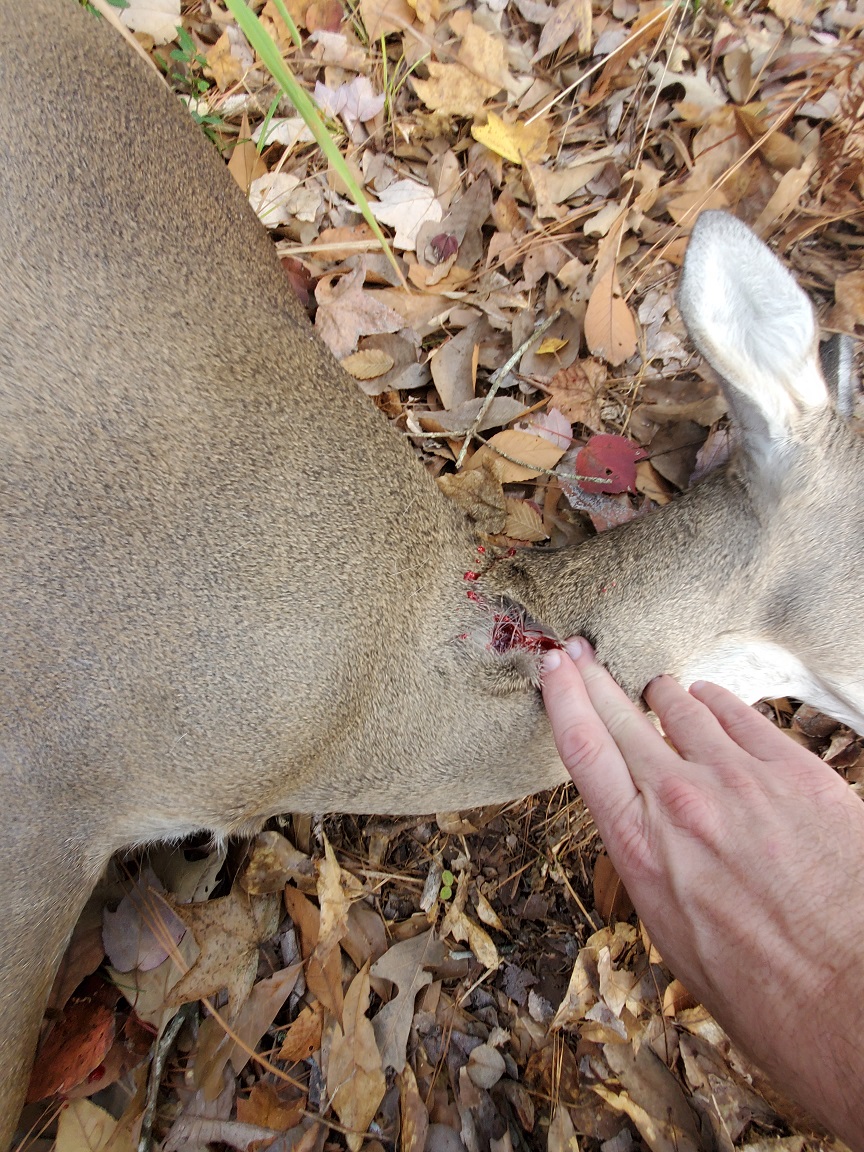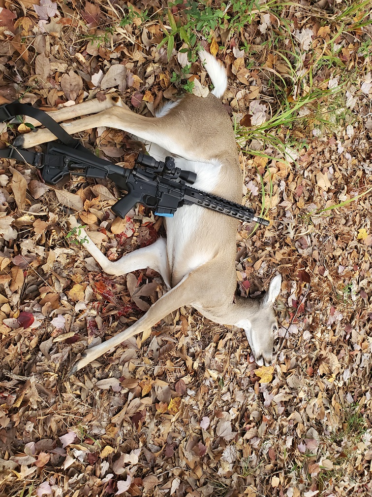 This is my primary deer rifle but this is the 1st deer that I’ve taken with this load. This bullet is super impressive on ballistics gel if you watch some YouTube videos on it. For deer, it was supper effective and I will continue to use it in this rifle. The Hornady 123gr SST load that I developed for my 18″ Grendel just doesn’t group as well as this. After seeing what the bullet did to the opposite shoulder, I would prefer a traditional double lung/heart shot versus a high-shoulder shot to prevent damage to the meat.